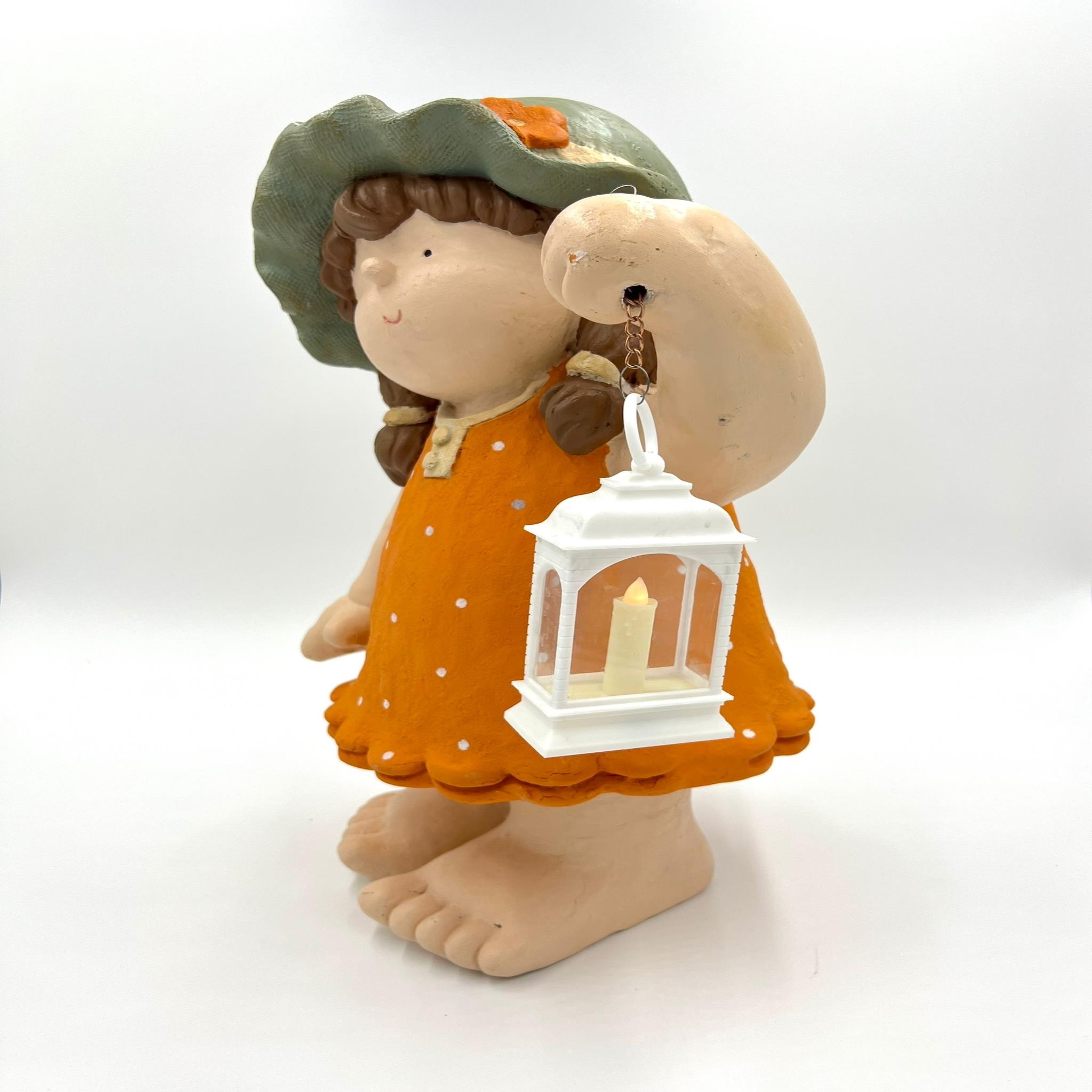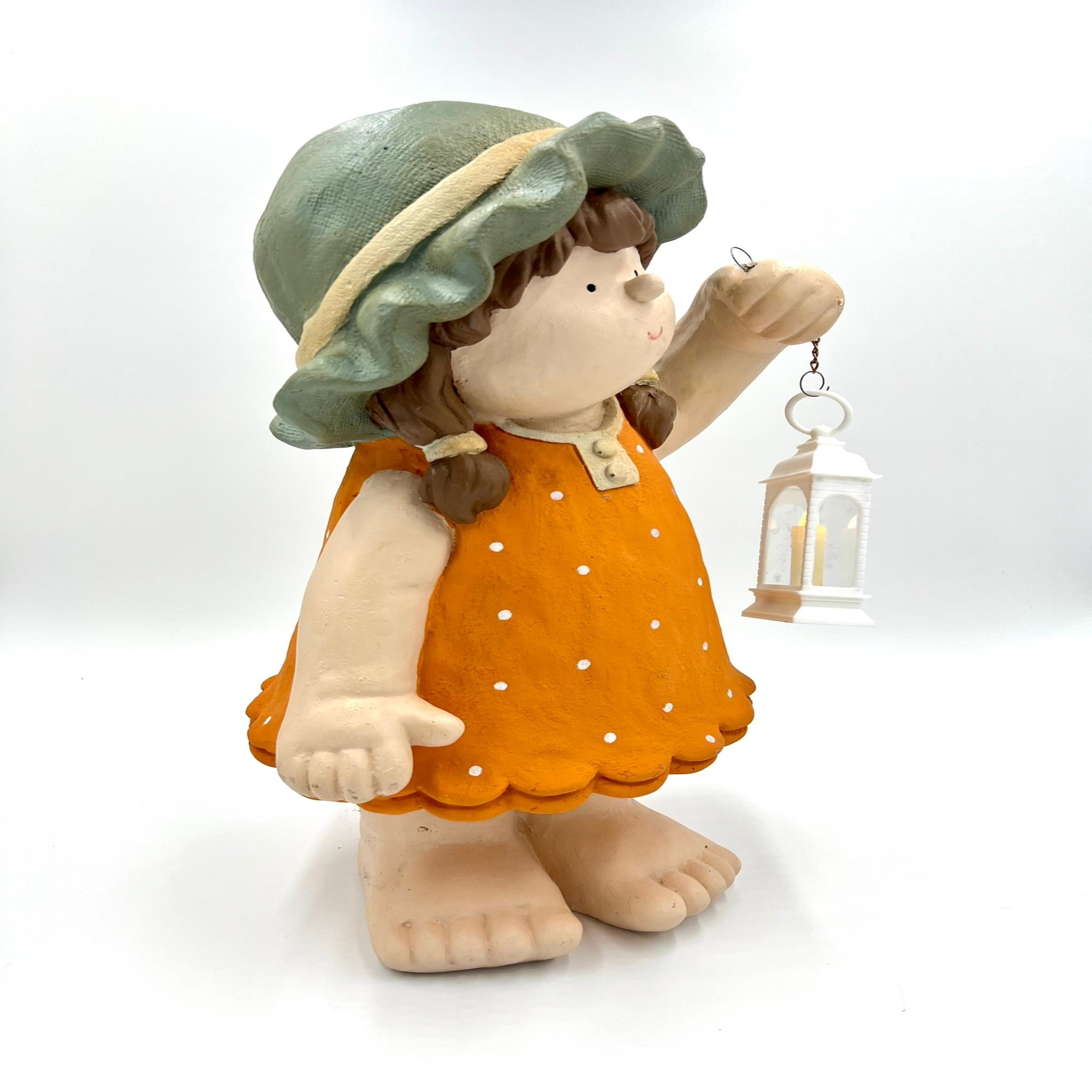 Ürünümüz polyesterden üretilmiştir. Orta boydur ve kızımızın elindeki lamba ışıklıdır dilerseniz yakabilirsiniz. Tamamen el boyamasıdır..